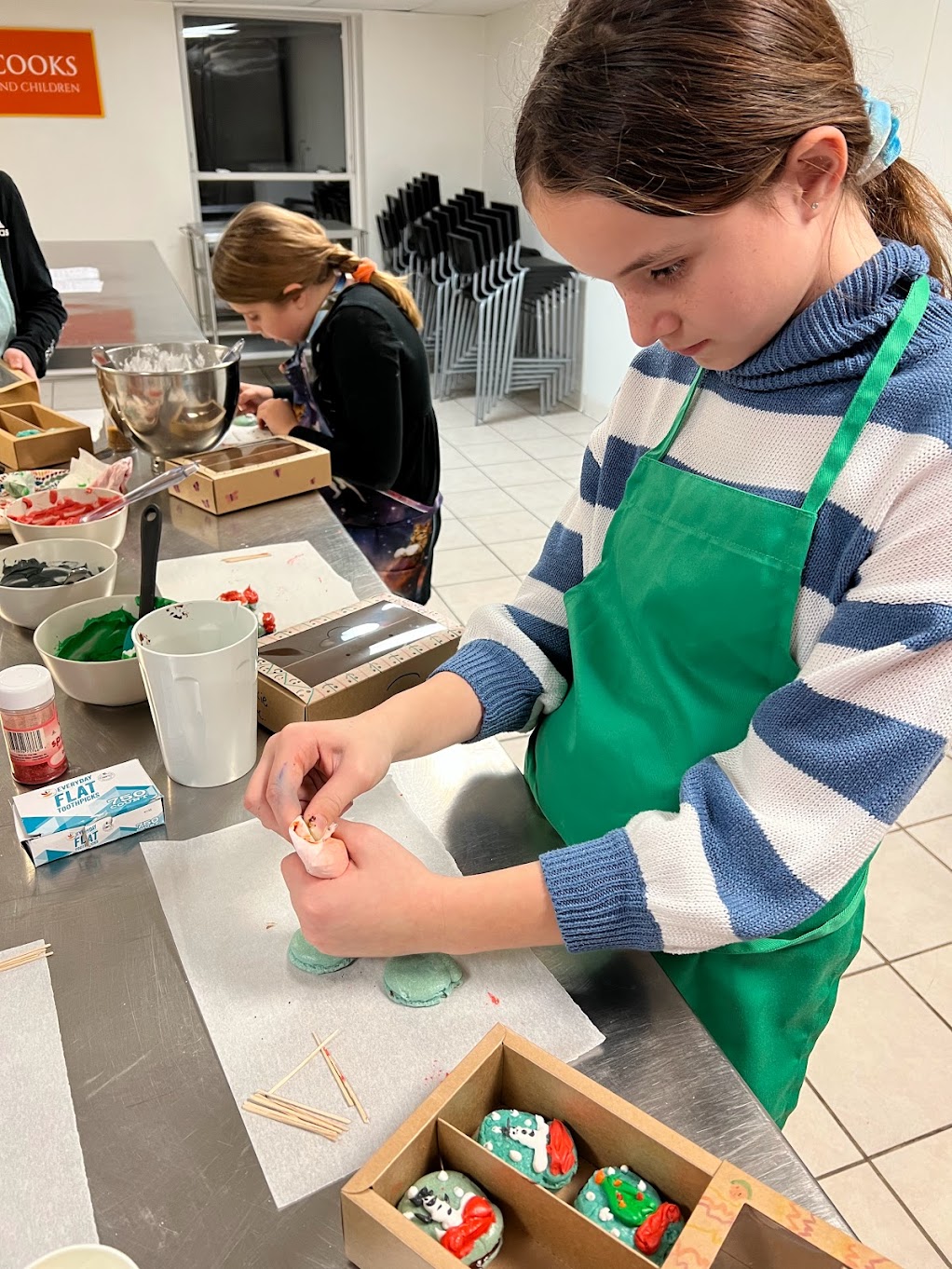 In this annual favorite children’s class we’ll make and bake French Macarons in holiday shapes, great gifts from the Kitchen. Limited to 10 children ages 8 – 14 years old, we’ll taste everything we make and bring home gifts as well. As always, we’ll emphasize organization as we work and reinforce basic cooking & baking techniques.
