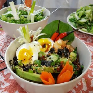 The perfect warm, delicious meal in one bowl – Grain Bowls can satisfy all of your taste cravings. A trip to the Farmer’s Market or down the fresh produce aisle of the grocery store, where every stall or bin is brimming with beautiful colors, textures and flavors, gives us so many possibilities to create delicious Grain Bowls. Grain Bowls are a healthy, hearty, one bowl meal complete with protein, vegetables, grains, a sauce and often a rub or marinade, and typically have many toppings. They are visually pleasing and taste even better. In this class we’ll take a Farmer’s Market haul of fresh produce, experiment with a number of grains including farro, polenta, rice and quinoa, many options for protein including eggs, chicken and beans, explore a number of cuisine options, ingredient ideas and cooking techniques, and then, in small groups, work together to create unique Grain Bowls. We’ll enjoy eating everything we make in class. You’ll go home with 10 sauce, rub and marinade recipes, a Grain Bowl Worksheet, 3 complete recipes and lots of ideas for making different bowls every night of the week. BYOB